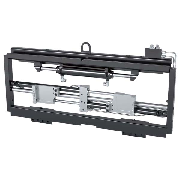 - 側移+雙開雙合為結合「側移功能」與「雙開雙合貨叉」的堆高機屬具,可同時實現貨叉左右側移與貨叉開合調整,適應不同棧板尺寸與無棧板貨物搬運需求。